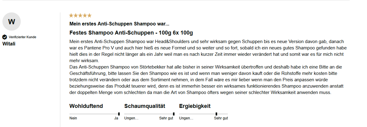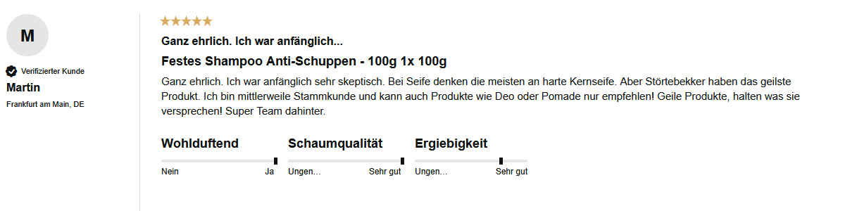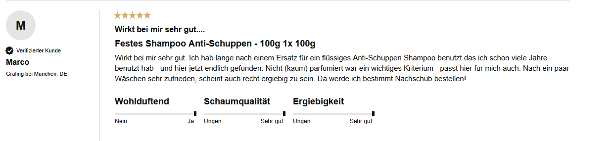 Aufgrund der Vielzahl an Rückmeldungen habe ich das feste Shampoo selber getestet. Denn zu oft sind wir in der Redaktion in den letzten Jahren mit „Anti-Schuppen-Trends" konfrontiert worden die angeblich helfen, aber Versprechungen am Ende nicht halten konnten.